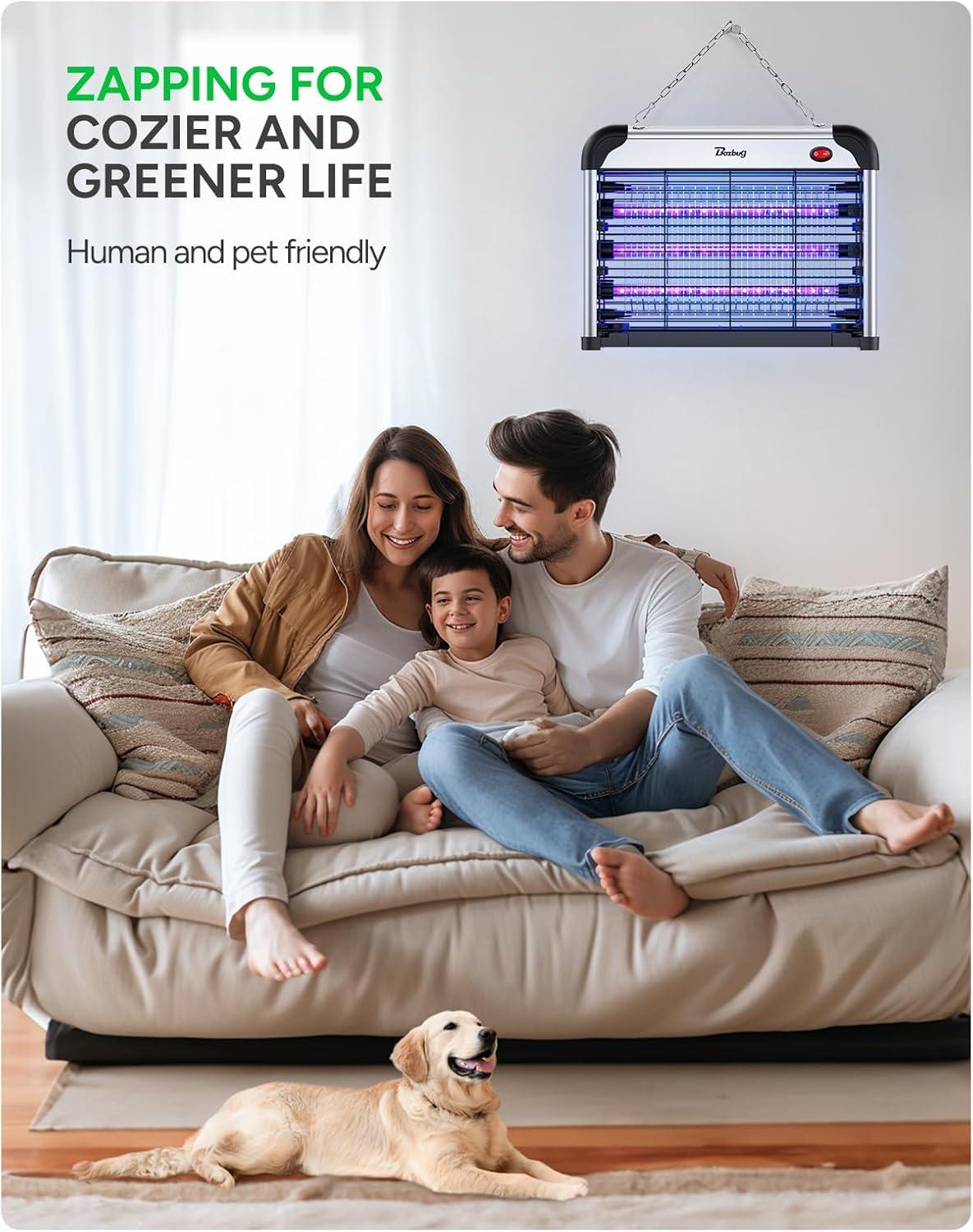 Efficient and Safe: This electric bug zapper uses 3800V high-voltage physical electric shocks to kill bugs like mosquitoes, flies, moths, and gnats, without the need for dangerous traps. It is equipped with a protective grid to avoid accidental contact by children and pets, making it a reliable mosquito-killing solution for indoor family use.