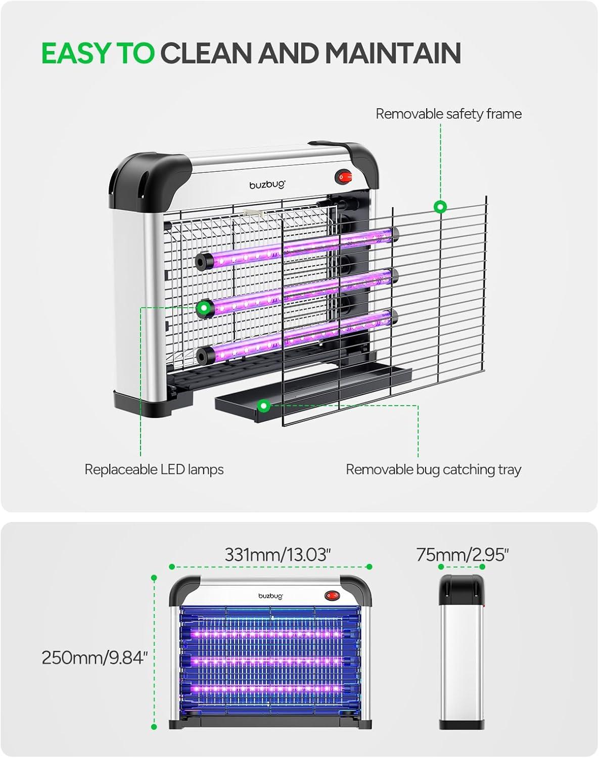 Reliable Warranty Statement: The Buzbug bug zapper comes with a one-year warranty. A 2-year warranty covers the LED lamp tube. The Buzbug LED fly zapper is designed for long-lasting performance. If the mosquito killer fails within this period, you can get a replacement through Buzbug's warranty service.
